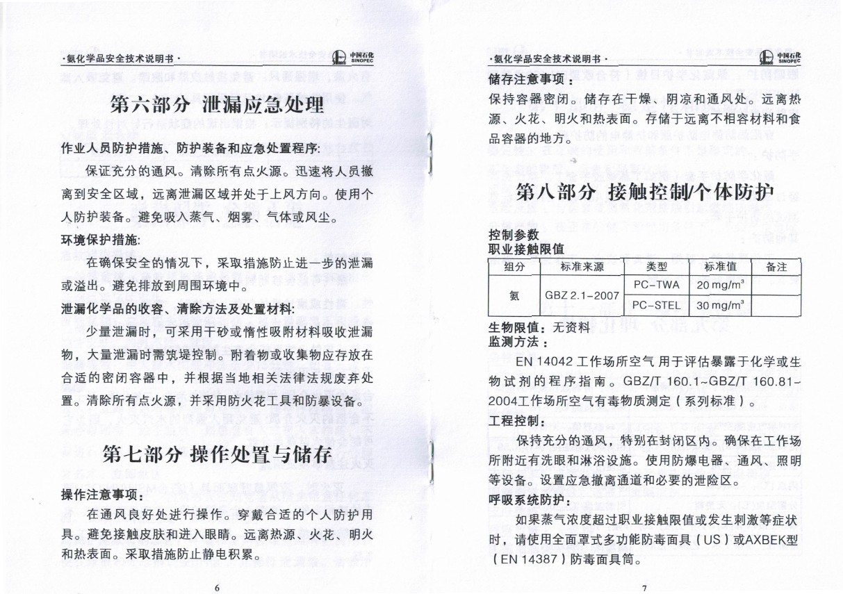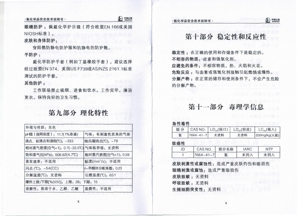 本產(chǎn)品為無(wú)色、有強(qiáng)烈刺激性氣味的液體,易溶于水,易揮發(fā),有毒,其氣體與空氣混合遇火發(fā)生爆炸;吸入過(guò)量氣體,會(huì)灼傷皮膚、眼睛、呼吸道粘膜,甚至窒息死亡。本產(chǎn)品廣泛用于化學(xué)、塑料、醫(yī)藥、國(guó)防等工業(yè)。液氨應(yīng)密封貯存,防爆曬,嚴(yán)禁接觸明火,操作人員應(yīng)戴防護(hù)用品