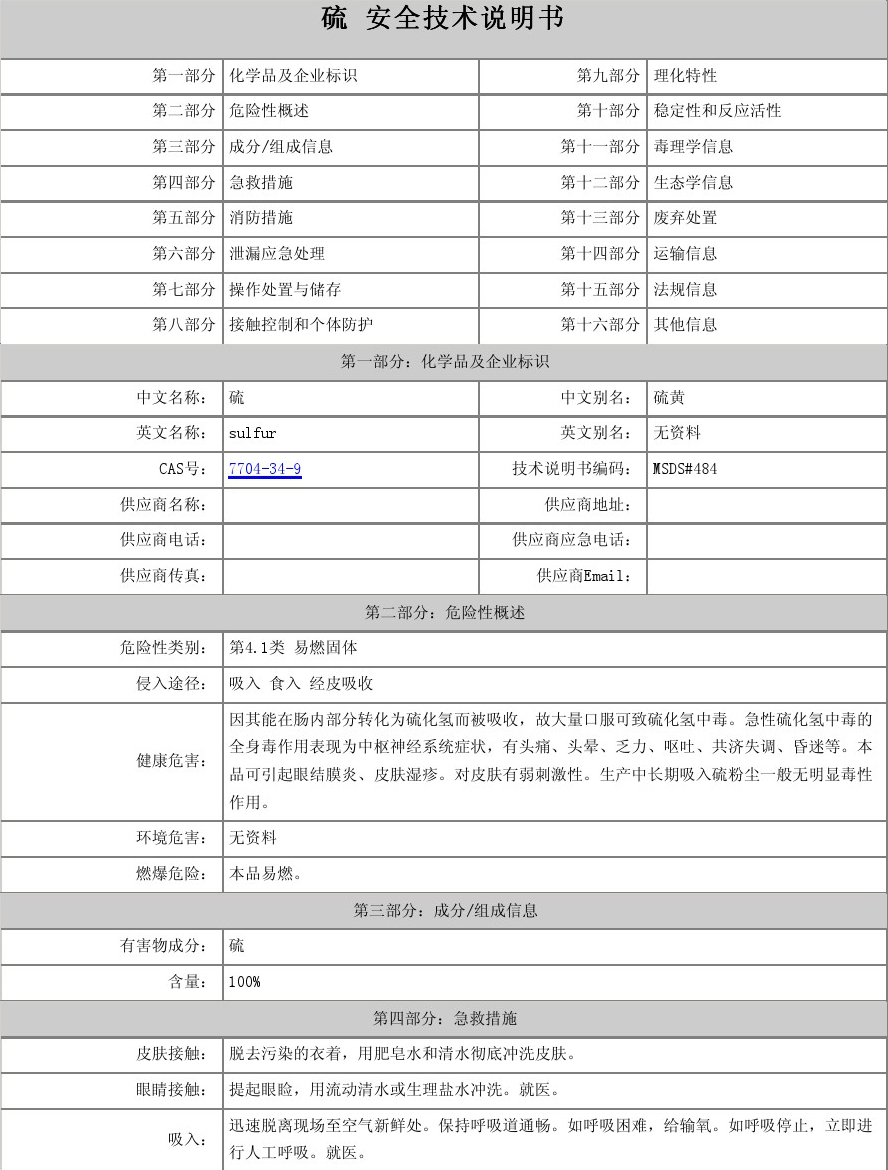 中文別名:硫;硫磺礦;硫磺粉;升華硫;S;IS60;預分散S-80;預分散IS60-80;母膠粒S-80;母膠粒IS60-80;藥膠S-80;藥膠IS60-80;硫磺;升華硫粉;S-80;硫磺硫磺;膠體硫;硫磺,硫磺石;硫磺膠懸劑;硫磺軟膏;升華硫;沉降硫;沉降硫磺;磷;硫 沉降;硫磺 升華;沉淀硫磺;沉降流磺;粉末硫磺;膠態(tài)硫;硫黃粉